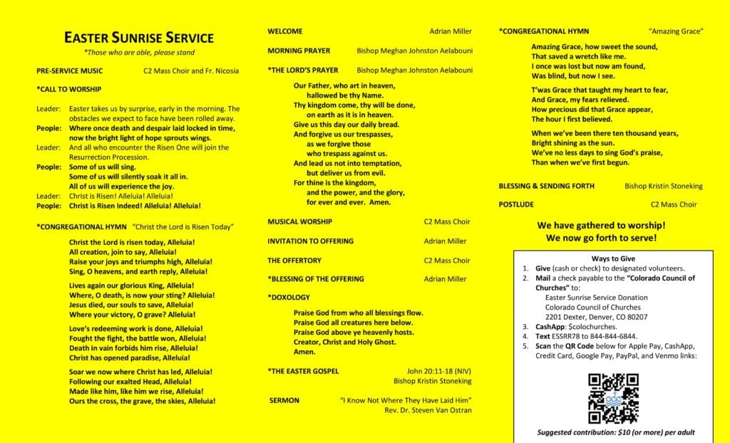 Easter Sunrise Service, Colorado Council of Churches, 2201 Dexter Street, Denver, CO 80207.