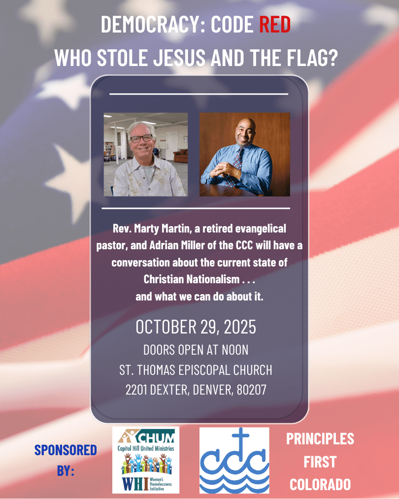 Join Marty Martin (a retired evangelical pastor, ethics professor, author, past COO/CEO of Food for the Hungry, a faith-based international relief and development organization) and Adrian Miller (Executive Director of the Colorado Council of Churches) for further discussion about the current state of Christian Nationalism, its impact on our country and democracy and what we can do […]